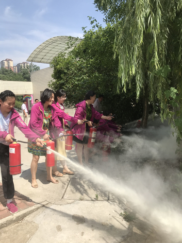 随后,保卫处专家对全园教职工进行了消防器材使用的培训活动。向大家示范讲解了常用基本灭火器具的使用方法:一提、二拔、三瞄、四压。随后,大家分组使用灭火器进行了现场灭火,真实地感受了灭火的过程。接着又介绍了消防栓及消防水带的安装和使用,老师们参与操作演练,亲身体验。