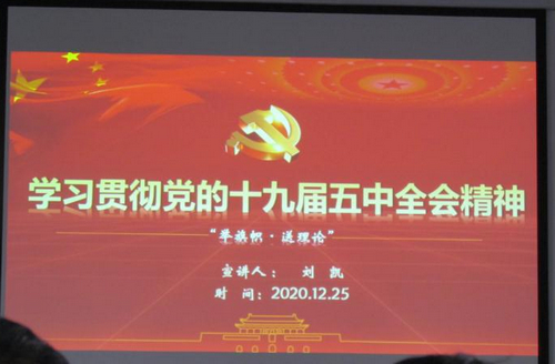 刘凯同志在党课中指出,党的十九届五中全会具有重大历史性、鲜明时代性和重要全局性,大家要准确把握决胜全面建成小康社会取得决定性成就;准确把握《建议》的核心要义;准确把握《建议》的主要内容;准确把握实现宏伟目标。要学深悟透、融会贯通要按照新发展阶段、新发展理念、新发展格局要求,做好本职工作