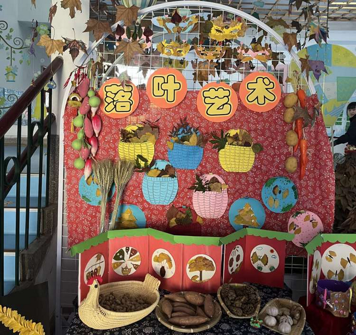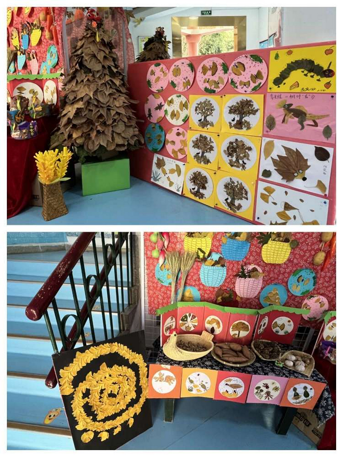 回忆金秋 落叶之美——幼儿园党团员主题活动布置“落叶艺术展”