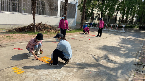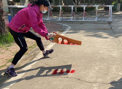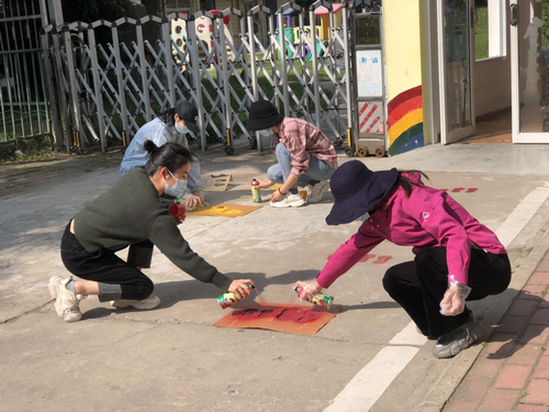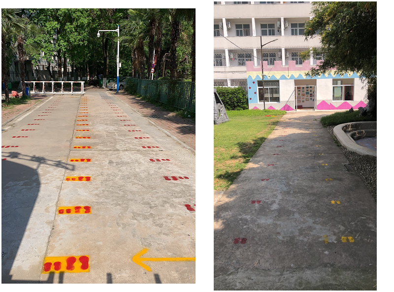 为了科学有效防范疫情,保障全体师生、家长的身体健康和生命安全,安农大幼儿园在上级部门的领导下,开展设置开学家长接送区域工作,在幼儿园大门口和园内部分区域绘制间隔一米的脚印排队标记。青年教师们发挥所长,制作脚印模板、测量距离、绘制脚印。大家齐心协力,伴着阳光与期盼,小脚印像花朵一样开满幼儿园!