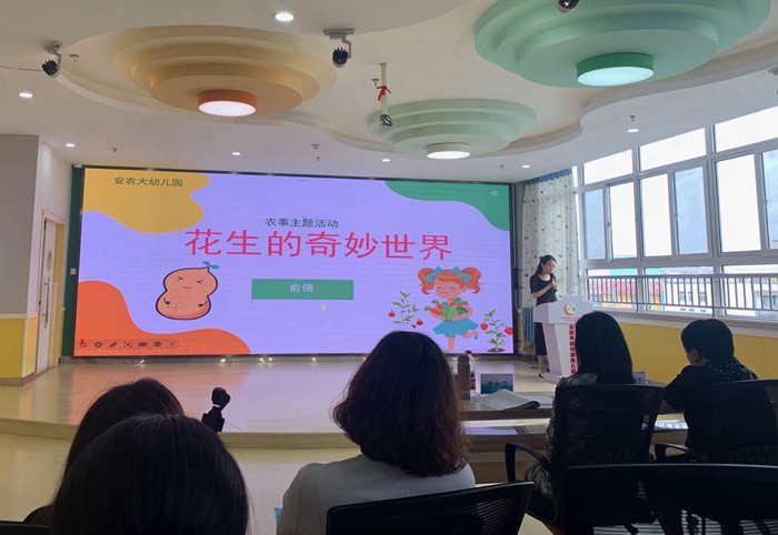 安农大幼儿园的俞倩老师在本次活动中做了区级课题《利用农事活动对幼儿进行劳动教育策略的研究》案例分享。俞倩老师通过生动有趣的实践活动,引导孩子们走进“花生的奇妙世界”。在活动中孩子们了解了关于花生的知识,探究花生生长的过程,在亲身体验和积极参与中,直观生动地发现花生的生长特点,获得丰厚的知识经验,感受到了劳动的快乐和收获!