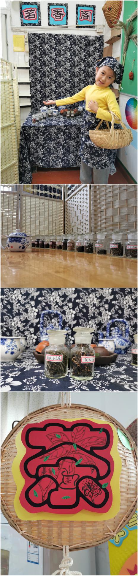 首先是建立了丰富的校园茶文化阵地:教室的墙面有幼儿和家长共同准备的各色茶叶和茶具,活动室的区角创设“茗香阁”,用图文并茂的形式生动活泼地向幼儿介绍了茶的历史、茶的礼仪、茶的作用等,营造出来浓厚的茶文化氛围,在浓厚的茶文化氛围中,孩子们增长了见识,学到了茶叶尝试、感受到了茶文化的魅力。