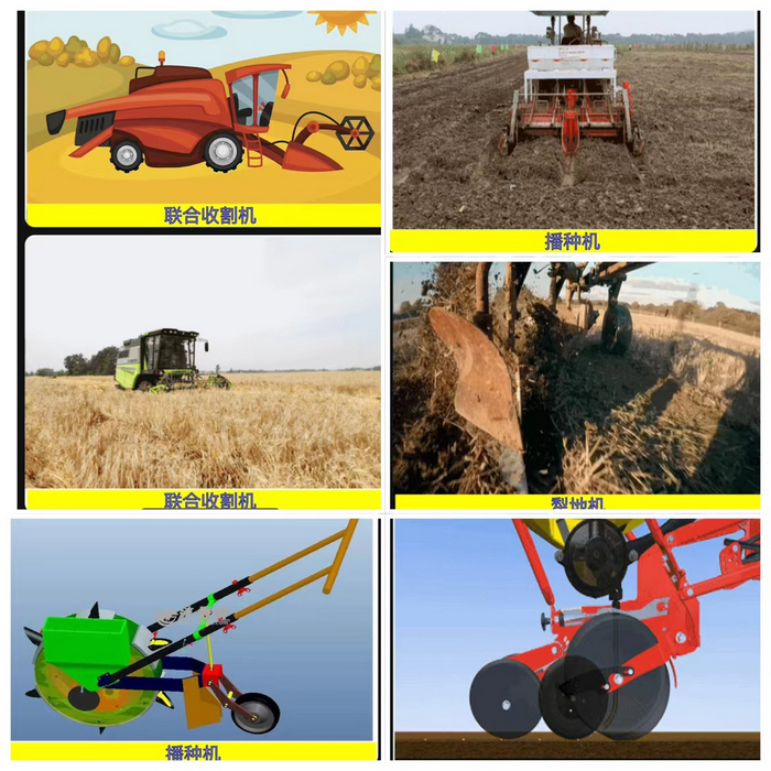 在秦爸爸精心准备的图片和视频中,一个个“大块头”(农业机械)把课堂氛围带入了高潮。各式各样的机械,犁地机,播种机,联合收割机,引来的小朋友们的阵阵惊叹。