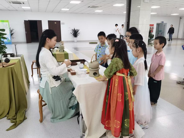 知茶礼。茶艺师为孩子们示范品茶时的坐姿,要端正、雅致,精神专注。为老师奉茶,讲究举案齐眉,双手端杯,这正是在实践中教给孩子们“尊敬师长、以礼待人”,在茶道中让孩子们感悟知礼、达礼、崇礼、用礼。