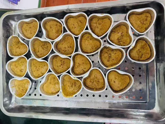 幼儿园里除了小朋友们的饭菜香,还传来阵阵桂花香,老师带着孩子们一起制作了香香的桂花糕