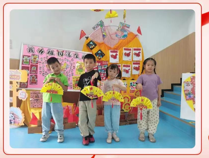 孩子们还用游戏、舞蹈、歌声表达对祖国的赞美和祝福。