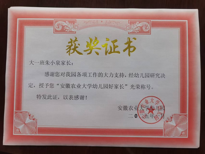 安徽农业大学幼儿园好家长—大一班吴蔚然妈妈朱小泉