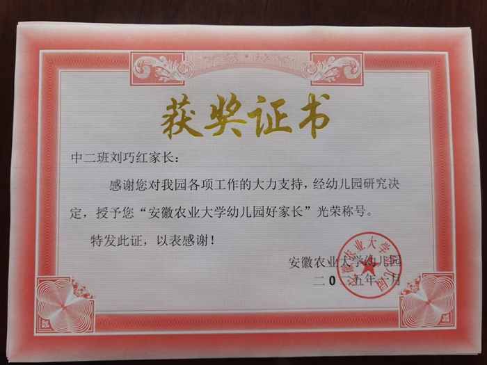 安徽农业大学幼儿园好家长——中二班曹亦玺妈妈刘巧红