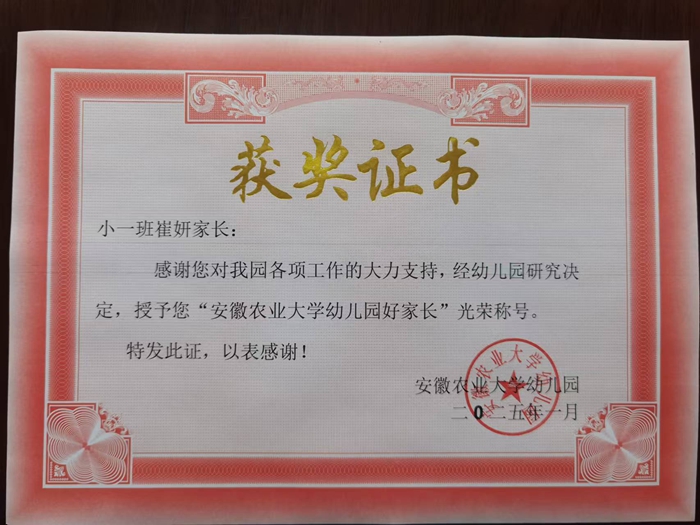 上一条:安徽农业大学幼儿园好家长——大一班李民哲妈妈罗欢 下一条:安徽农业大学幼儿园好家长——小三班郭方嘉妈妈方芳