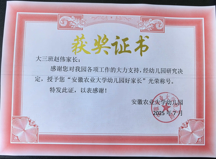 安徽农业大学幼儿园好家长——大三班王昭薇妈妈赵伟