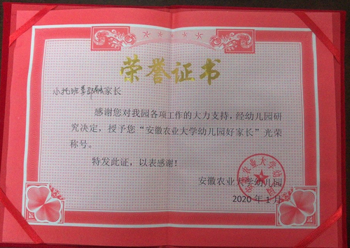 上一条: 安徽农业大学幼儿园好家长——大一班程子慕奶奶郭珍 下一条: 安徽农业大学幼儿园好家长——小三班邓竣文妈妈商飞