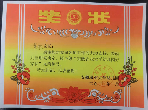 我是谢旖杉的奶奶,很荣幸可以参加安徽农业大学幼儿园“好家长”的评选,在平时与杉杉的相处过程中,也常常以身作则,积极营造良好环境,让孩子健康、快乐成长。