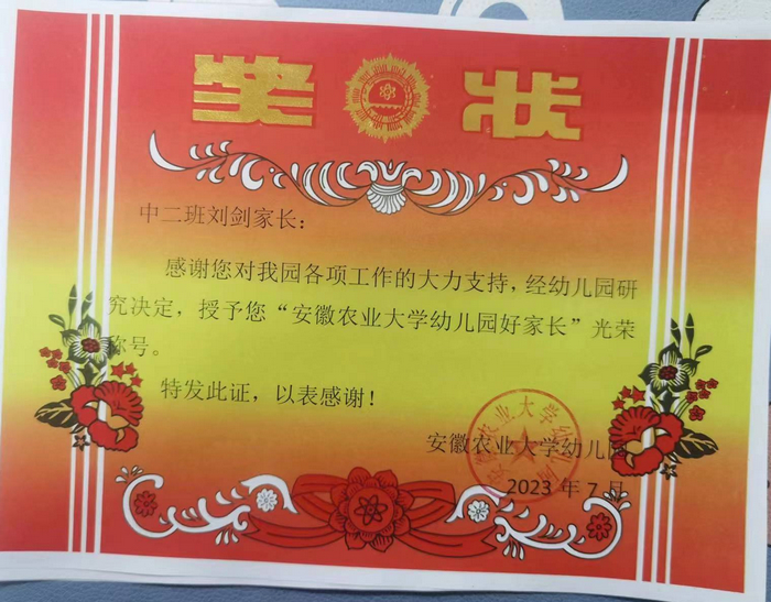 安徽农业大学幼儿园好家长—中二班刘瑾瑜爸爸刘剑
