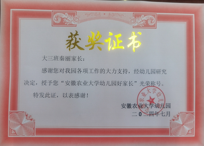 安徽农业大学幼儿园好家长—大三班姜寒睿妈妈秦丽