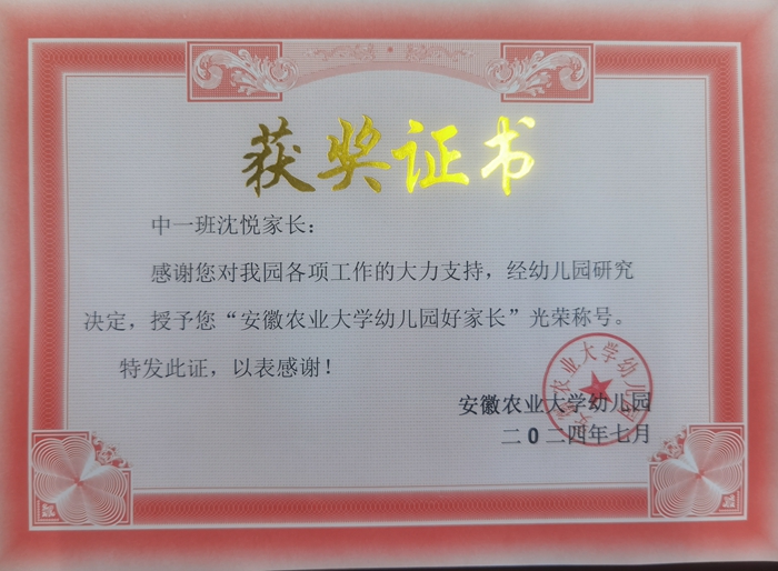 安徽农业大学幼儿园好家长—中一班秦祥瑞妈妈沈悦