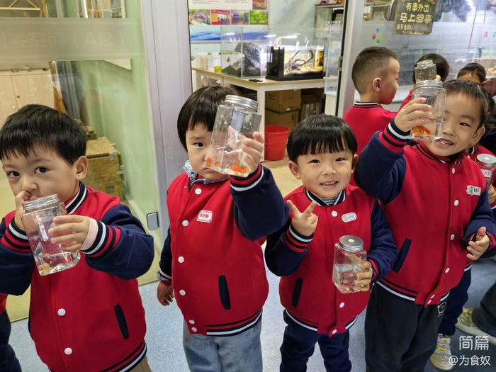 离开的时候,哥哥还给每位小朋友送了一条可爱活泼的小金鱼,小朋友拿着小金鱼都开心极了!