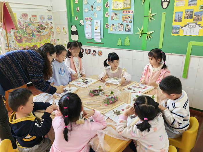 拓花草之印 染自然之美——安农大幼儿园中一班“家长进课堂”