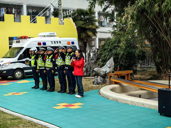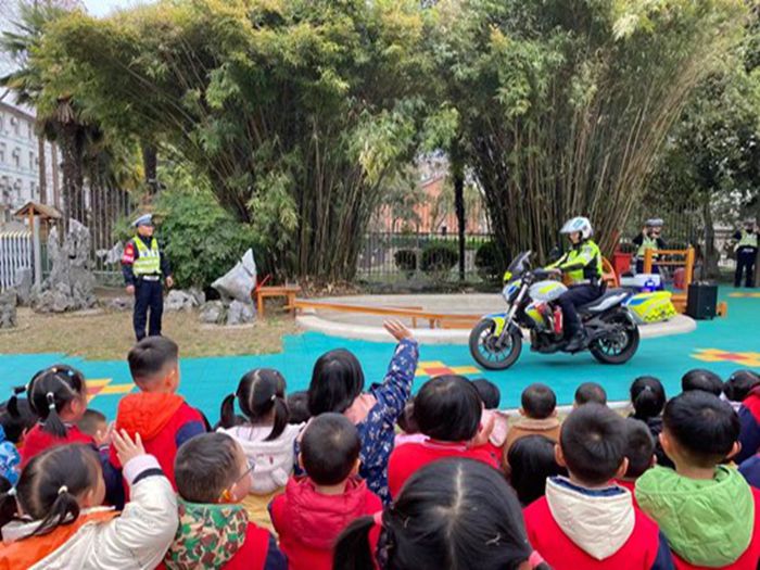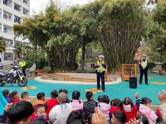 微风有信,花开有期,在这阳春三月,为筑牢安全出行防线,让交通安全的种子在幼儿心中生根、发芽。安农大幼儿园小二班凌潇宜小朋友的爸爸——合肥市公安局交警支队蜀山大队的凌警官带领他的队员们走进幼儿园,为孩子们带来了一场不一样的交通安全知识讲座。