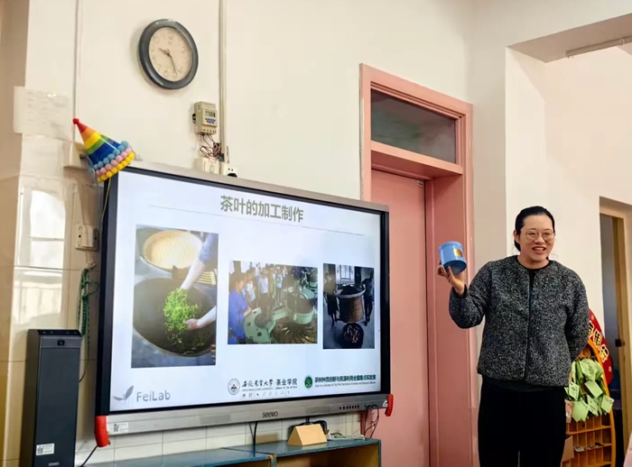 1120日,安农大幼儿园大三班小朋友迎来了一场别开生面的“家长进课堂”活动。邀请了何奕飞小朋友的妈妈——安农大茶学院的费月老师,带领孩子们走进一片叶子的世界,开展了一场以“魅力中国茶”为主题的文化体验活动。