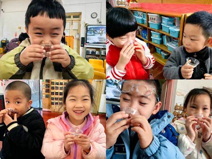 最让孩子们兴奋的环节莫过于泡茶、品茶环节。孩子们观察茶叶在水中舒展的变化,闻着袅袅升起的茶香,品尝第一口清茶。尽管只是浅浅一口,孩子们却兴奋地交流着自己的感受:好香呀!”“有点苦,但是好喝!