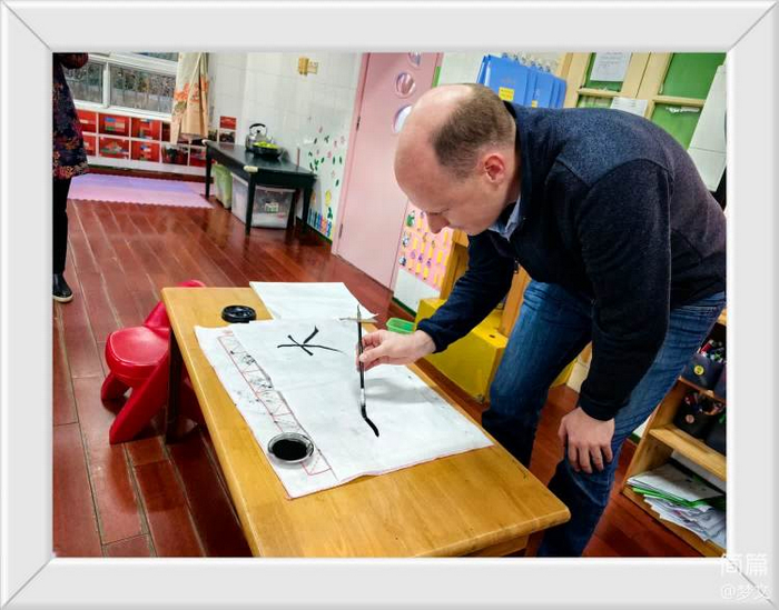 毛笔是中国传统的书写工具和绘画工具。古往今来,无数文人用毛笔挥洒情怀,在历史的卷轴上为我们记录时代春秋,一撇一捺间,尽显中华民族深厚的文化底蕴。课堂上我们带米可小朋友和她的爸爸一起用毛笔写汉字,感受中国的书写文化。