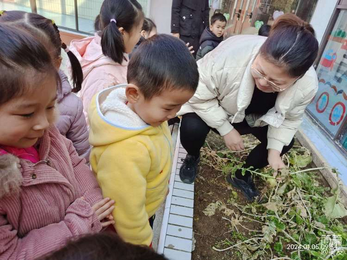 在幼儿园的教育中,种植区是幼儿园环境教育中重要的组成部分之一。 因为它不仅具有绿化,美化环境的作用,同时还蕴涵着很大的教育价值。这个学期小三班的小菜地种植了大白菜和青皮红心萝卜,在小朋友们的悉心照料下,种植的蔬菜都成熟了。15日,小三班邀请了陆知乐的妈妈来为小朋友们科普萝卜的有关知识。