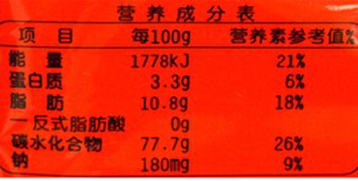 下图所示的营养标签是一种高能量、高糖、高脂和高盐食物。