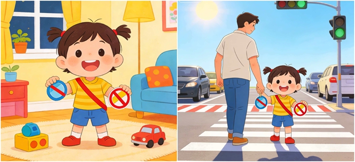 带孩子外出时,全程牵好孩子的手,遵守交通规则,走斑马线,做到“红灯停、绿灯行”;不让孩子在马路边、停车场追逐打闹。乘车时,4岁以下幼儿务必使用安全座椅,不坐副驾驶位,不将头、手伸出窗外;不乘坐无牌无证、超载的车辆,不搭乘陌生人的车辆。