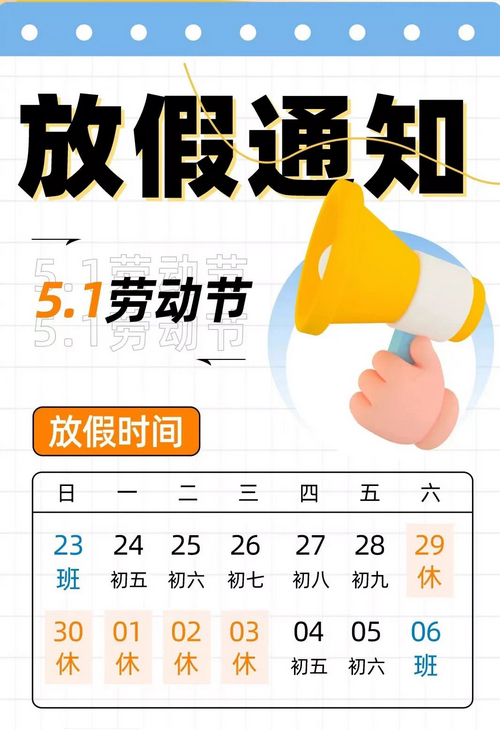 五一小长假就要到了,首先感谢您一如既往对我园工作的支持和理解。为了让孩子度过一个安全快乐并且有意义的小假期,根据国家节假日放假通知,现将我园2023年“五一”劳动节放假有关事项通知如下: