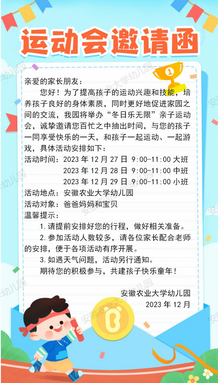 2023年“冬日乐无限”亲子运动会家长邀请函