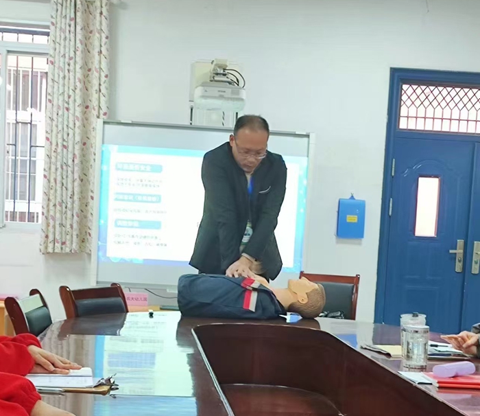 为加强幼儿园安全管理工作,提高每一位教职工的安全意识在幼儿园突发事件中掌握一些简单易行的急救知识,加强保教工作中突发事处理能力给幼儿有一个健康、安全的成长环境。安农大幼儿园于2024年12月19日邀请了合肥市急救中心的医生,为幼儿园教职工开展了急救专题培训活动。