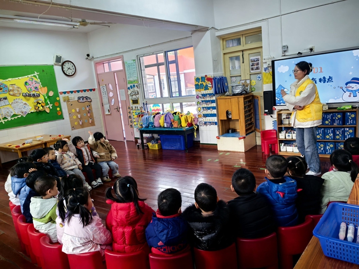 我们的祖国地大物博,北方的冬天和南方的冬天有什么不一样呢?哥哥姐姐们用这个疑问引导孩子们进入了今天的主题。
