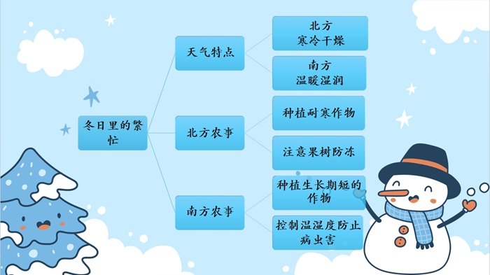 哥哥姐姐们分别介绍了北方和南方不同的农事活动。从北方种植的农作物,如:萝卜、韭菜、香菜、土豆...它们为什么耐寒呢?寒冷的冬天,北方的果蔬蔬菜是怎么管理的呢?而适合在南方种植的花菜、油菜和大蒜都有什么特性?什么是“堆肥”,为什么南方比北方更适合“堆肥”呢?