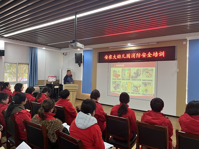为进一步增强全体教职工安全意识,提高火灾自我保护能力,筑牢校园安全防线。2月19日,安农大幼儿园开展了消防安全培训,邀请安徽农业大学保卫处消防科工作人员来园为老师们讲解消防安全知识