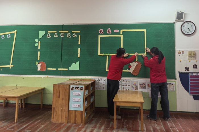 一角一落皆教育,一纸一张皆创造。老师们根据幼儿的身心发展规律,从视觉、感官等方面打造充满童真童趣的班级环境。从主题墙到活动区,从区域设计到材料投放,处处彰显温馨舒适、温暖愉悦的生活、学习环境。同时大家共同商讨,制定各项计划,备课、制作教玩具,为新学期教学做好准备。