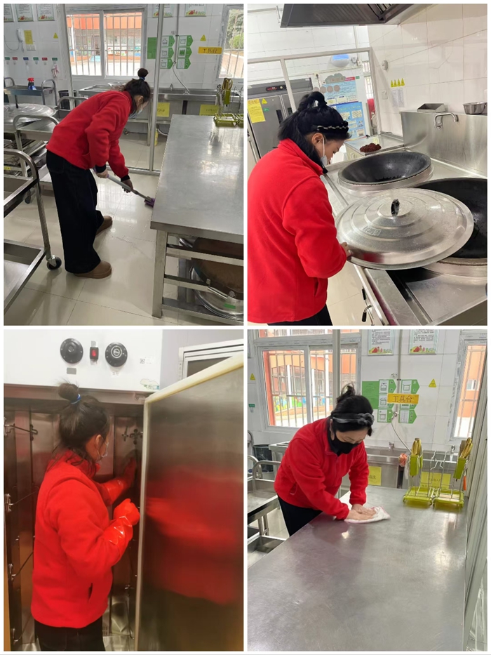 食堂作为幼儿园的健康供应站,开学前的准备工作显得尤为重要。食堂工作人员迅速行动,分工明确,深度清洗厨房用具,从锅碗瓢盆到烹饪器具,每一个细节都不放过,操作台经过仔细擦拭,台面一尘不染,从里到外、从上至下都焕然一新。幼儿园还联系专业人员进行了燃气油烟机的彻底清洁,为食材的加工提供了安全,为幼儿的健康饮食提供有力的保障。