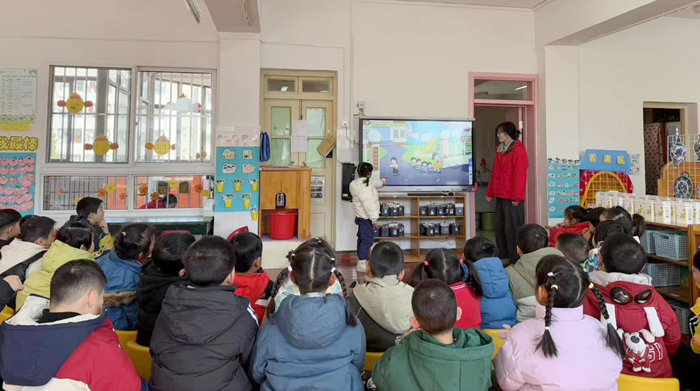 老师精心准备开学第一课,通过言语交流、故事讲述等方式,引导孩子们分享新年趣事、成长收获等,同时融入安全提醒和健康提示,促进幼儿更好地融入幼儿园生活。