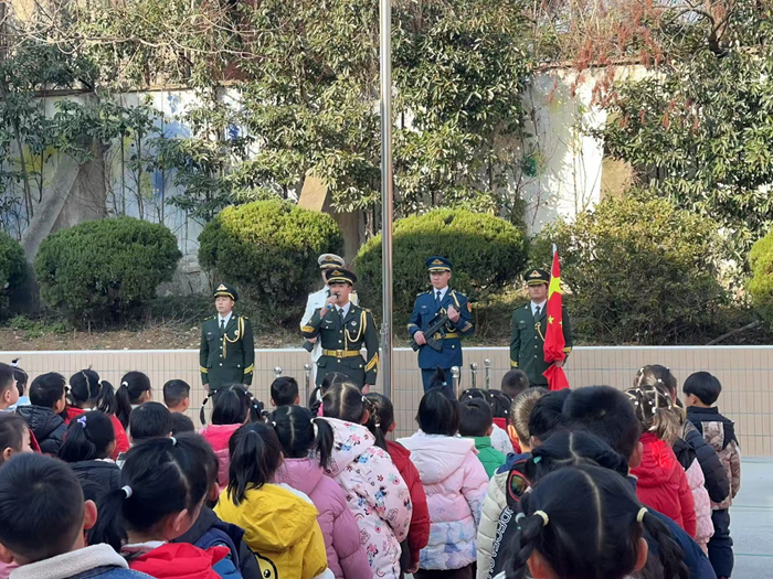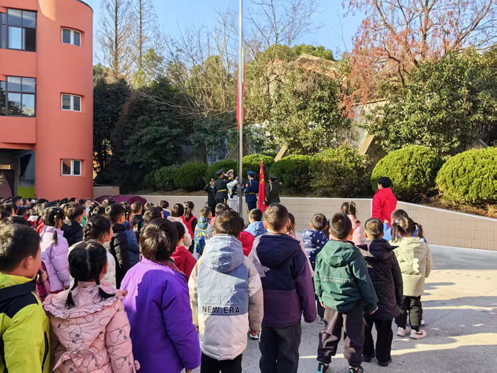 开学第一天的升旗仪式上,当一身戎装的解放军叔叔们出现在孩子们面前时,大家都充满期待。随着音乐的响起,英姿飒爽的解放军叔叔扛着国旗,步伐一致而又整齐。伴随着激昂响亮的国歌声,鲜艳的五星红旗冉冉升起,全体师幼对国旗行注目礼,齐唱国歌,爱国的种子在每一个小朋友心里悄然发芽。