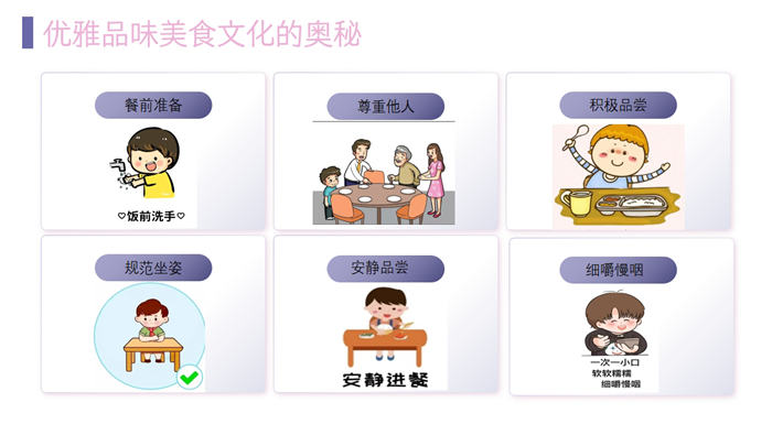 最后,还为孩子们介绍了文明进餐的“餐桌礼仪”。
