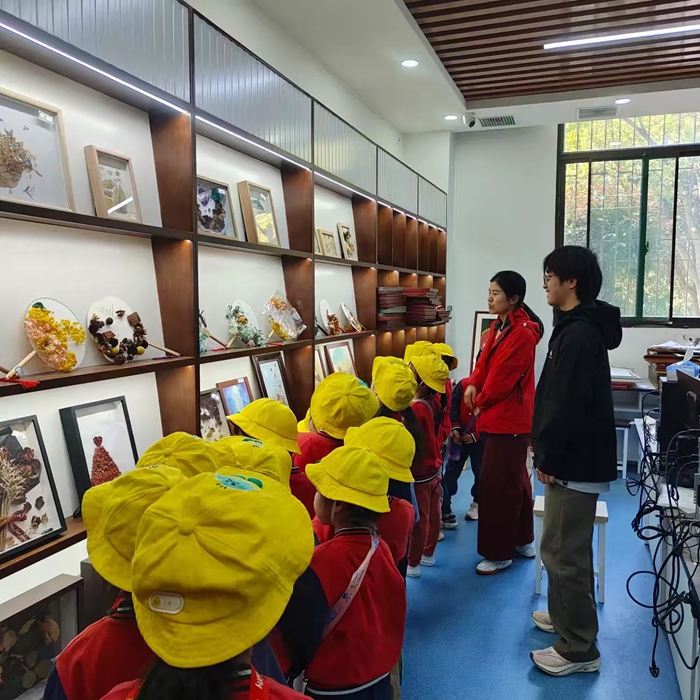 干花室里的春日魔法。一进入干花制作室,小朋友们就被眼前的景象吸引住了。各种各样用植物制作的手工艺品琳琅满目,有漂亮的团扇,扇面上的干花色彩鲜艳;还有精美的画作,每一幅都像是在讲述着春天的故事。小朋友们瞪大眼睛,好奇地观察着这些奇妙的作品,不时发出惊叹声。