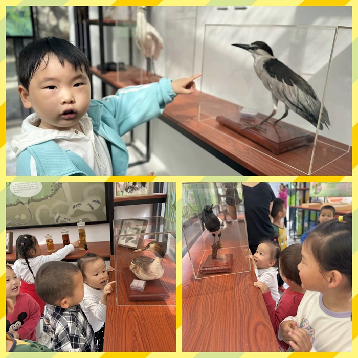 自然教育科技小院又更新了新的小鸟标本!小三班的小朋友们兴致勃勃的开始了参观。