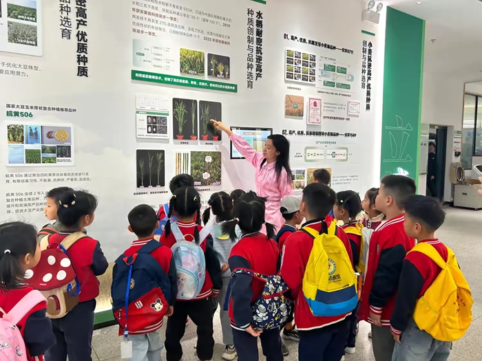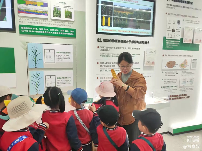小朋友们还来到了“作物抗逆育种与减灾国家地方联合工程实验室”,小朋友们围在一件件展品前,听讲解员阿姨讲述玉米的种类、进化、生长发育、种植方式变革和多样化的功能用途等等,这里,各种仪器工具、玉米样本琳琅满目,让小朋友们眼花缭乱。
