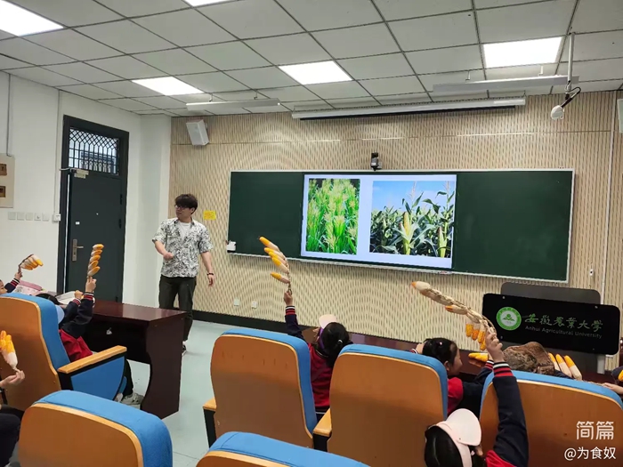 一颗颗金黄色的玉米粒,是从哪里冒出来,长成高大的玉米植株,结出饱满的玉米棒子的呢?在大学生哥哥的生动讲解下,小朋友们瞪大了好奇的眼睛,听得津津有味。