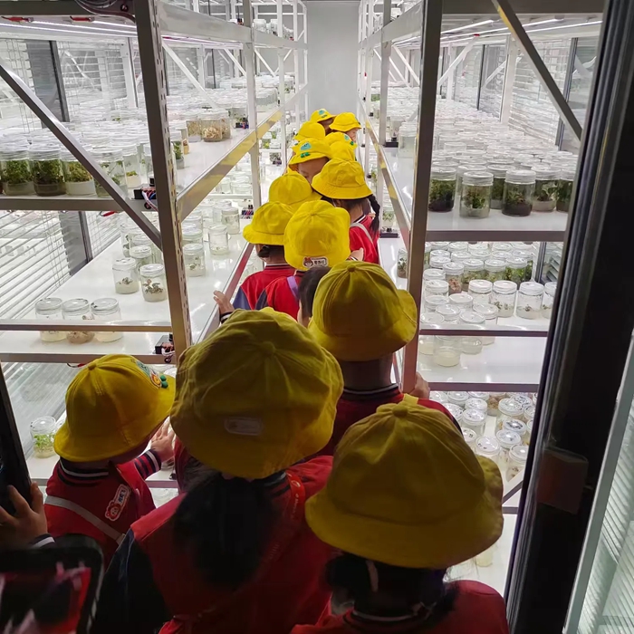 瓶瓶罐罐里的小生命。在无菌育苗室,小朋友们看到了许多瓶瓶罐罐,里面是正在茁壮成长的小苗。这些小小的生命在无菌的环境里努力生长,等待着被移植到更广阔的天地。小朋友们看着这些育苗瓶,心中充满了对生命的好奇和敬畏。