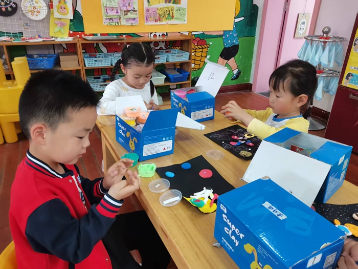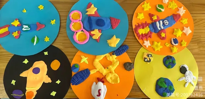 在动手实践环节,小朋友们纷纷化身“小小艺术家”。彩泥在他们手中被揉、搓、捏、压,不一会儿,形态各异的“宇航员”“火箭”“宇宙飞船”便诞生了。有的小朋友制作的火箭五彩斑斓,还细心地装上了“火焰尾巴”;有的用彩泥捏出的宇航员戴着大大的头盔,憨态可掬。
