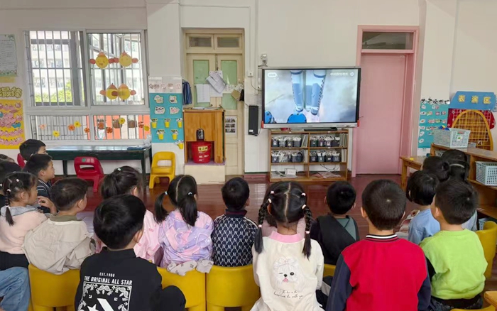 老师为小朋友们播放了航天科普视频。璀璨的星辰大海、气势磅礴的火箭发射、宇航员在太空漫步的画面,瞬间吸引了孩子们的目光。大家目不转睛地盯着屏幕,不时发出阵阵惊叹,“哇,火箭飞得好快呀!”“宇航员叔叔在太空里像超人一样!”通过生动的画面与简单易懂的讲解,孩子们对航天知识有了初步的认识,心中也悄然种下了航天梦想的种子。