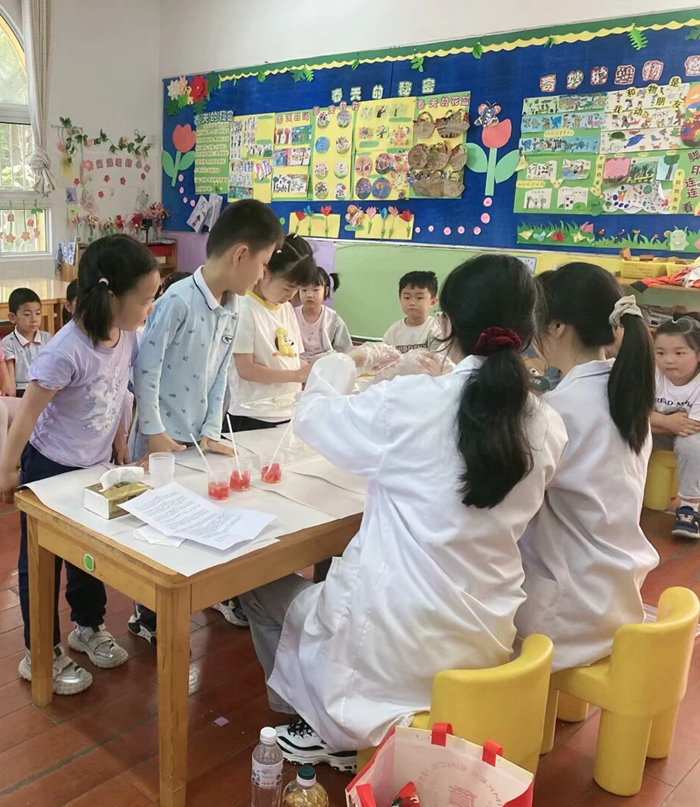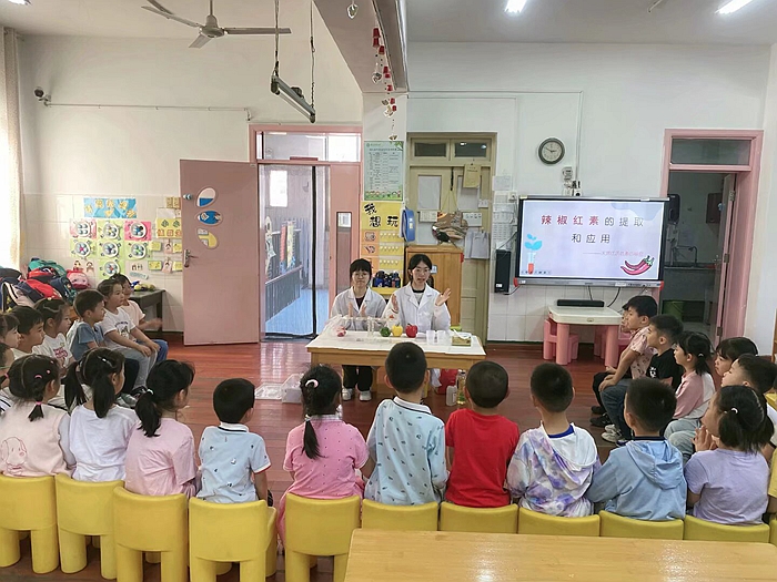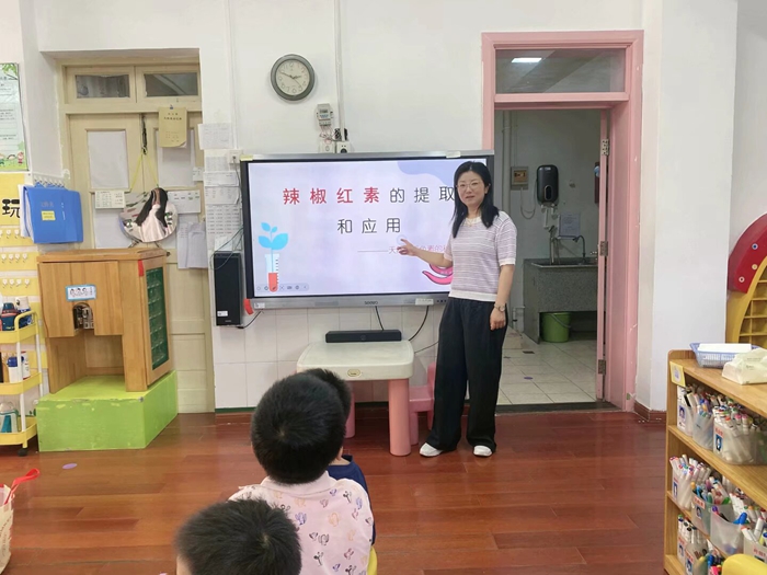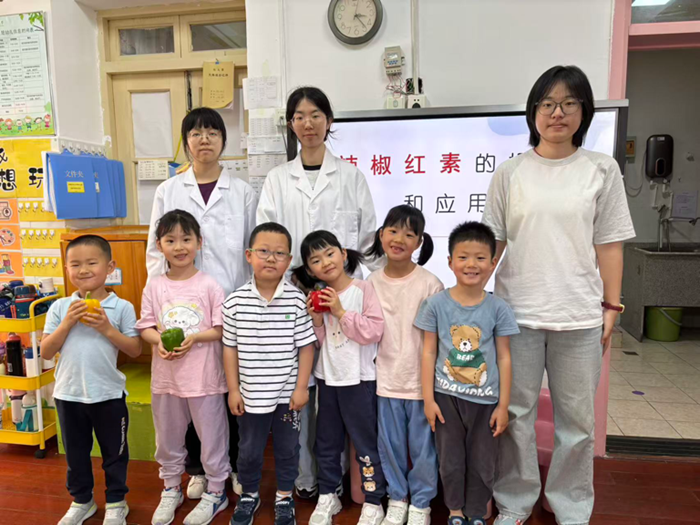 5月7日下午,安徽农业大学材料与化学学院应用化学专业的大学生姐姐们艾琼老师的带领下来到大三班化身“色彩魔法师”,带领孩子们通过趣味实验探索辣椒中隐藏的红色秘密