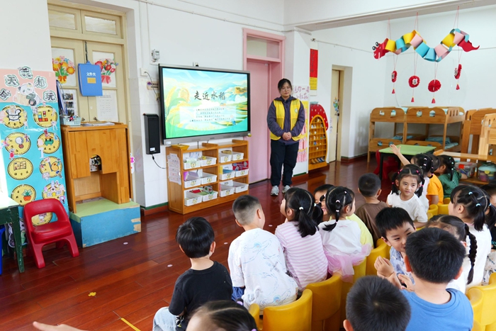 大学生哥哥姐姐们通过精心制作的课件讲述农耕知识与安全事项。课件以动画形式展示小麦生长过程、水稻插秧技巧,搭配儿歌与趣味问答,充分吸引了孩子们的注意力,让他们踊跃参与其中。面对小麦怎样变成面粉?等提问,活动里小手林立,孩子们积极回答。在互动中,他们了解到农耕的辛苦,也明白了粮食的来之不易。志愿者还反复强调实践安全,如观看打小麦需保持距离、插秧时注意防滑,小朋友们认真聆听,频频点头,将安全知识牢记心间。