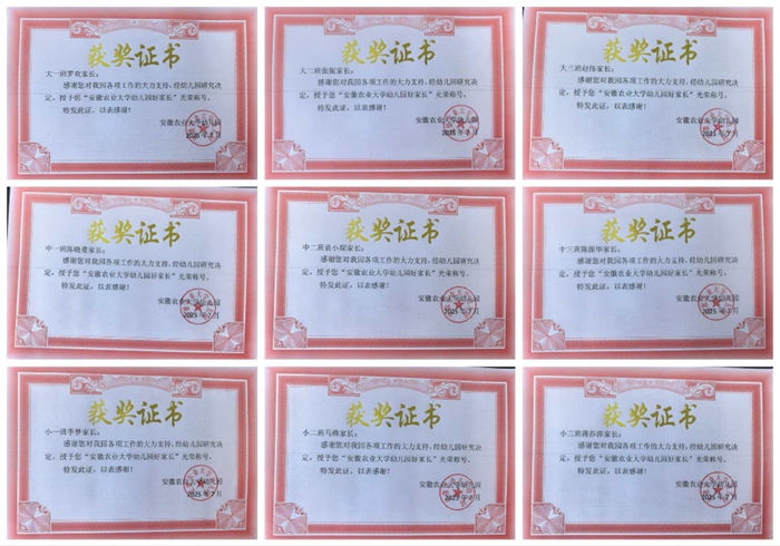 好家长成就好孩子——安徽农业大学幼儿园2025年春季学期“好家长”评选