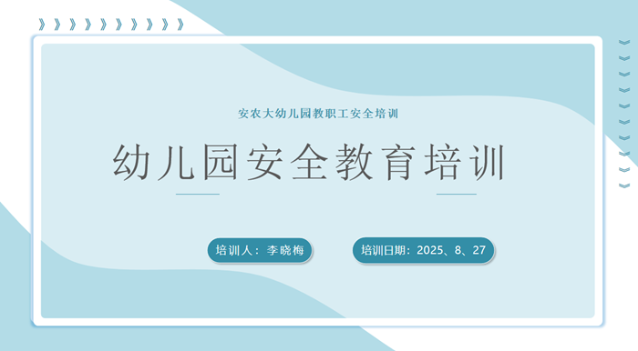 云天收夏色,木叶动秋生。为了全面提升教职工队伍的整体素质与专业水平,认真贯彻落实《3-6岁儿童学习与发展指南》和《幼儿园教育指导纲要》精神,夯实教职工队伍的专业基础。2025825日至827日,安农大幼儿园组织教职工开展了多场园本培训活动。